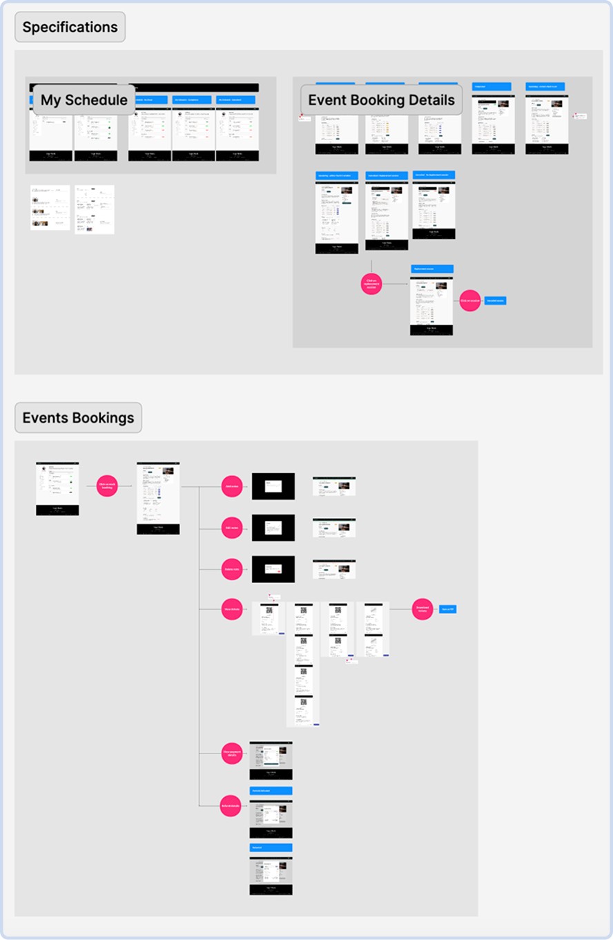 Here are the different user flows and dependencies for events booking feature in the customer portal.