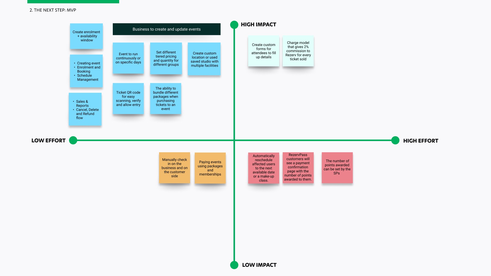 Secondly, due to a strain in resources and time, I conducted an MVP scoping where I focused on the necessary features to support real-world operations at launch.